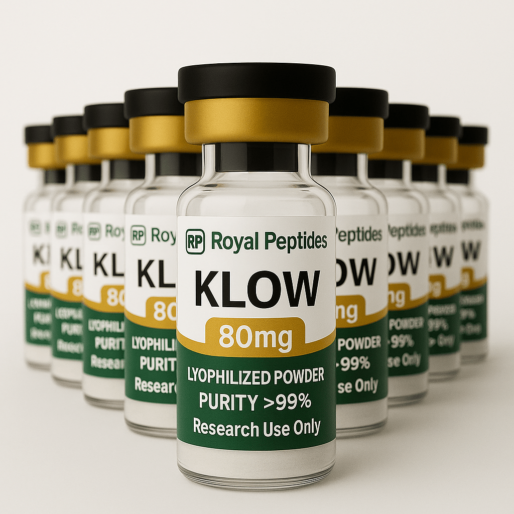 KLOW Peptide Blend is a research compound designed for laboratory studies focused on cellular signaling, metabolic regulation, and peptide interaction. Scientists use peptide blends in controlled experiments that examine biological activity inside cells. Research models measure peptide influence on cellular communication, metabolic pathways, and molecular signaling.
